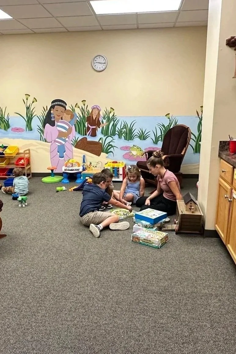 NURSERY LOCATED ON LOWER LEVEL. AVAILABLE DURING BOTH SERVICES.